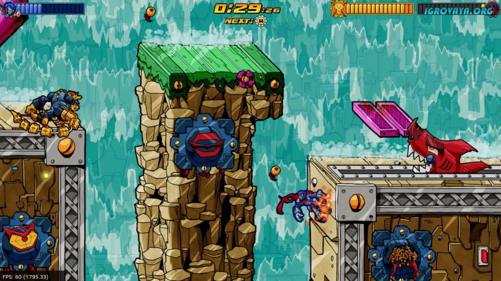 Чтобы улучшить свои шансы на победу, игрокам следует собирать шестеренки, активируя Импульс - способность, увеличивающую скорость движения и помогающую избежать опасностей. Выполняйте задания на заработок золота, чтобы разблокировать уникальные навыки и способности, такие как тройной прыжок, самонаводящиеся бомбы и мощные атаки, способные одолеть любого противника.