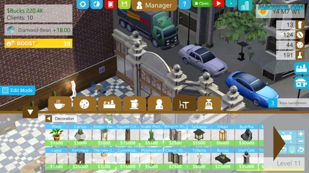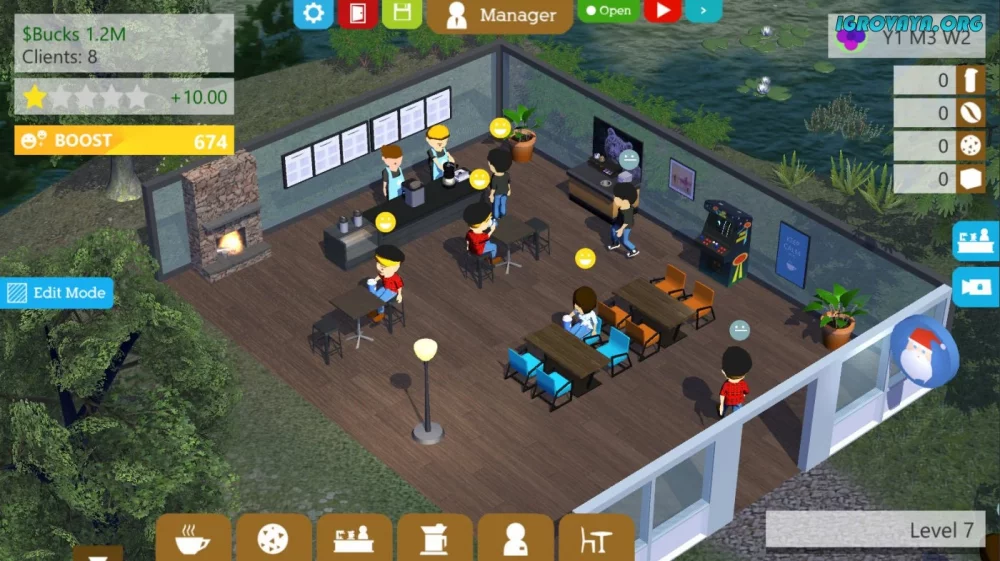 - Управляйте каждым аспектом своей кофейни, начиная от подбора персонала и заканчивая оформлением интерьера.