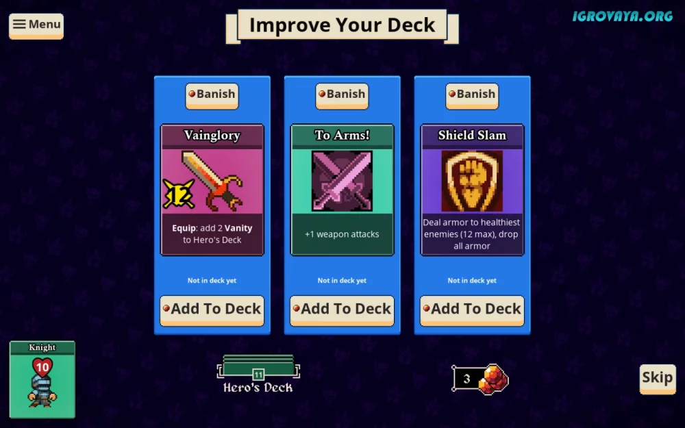 - Экспериментируйте с комбинациями карт, так как порой победа зависит от правильной последовательности действий.