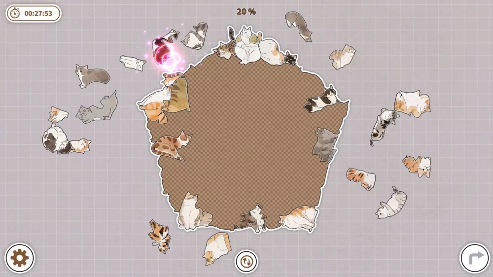 Простое управление позволит вам сразу же начать играть. В Cats Huddled Together доступны два режима игры: сборка пазла из разнообразных кусочков и объединение схожих элементов. Более 1000 уникальных кошек разных размеров и форм ждут вас, чтобы вы смогли правильно соединить их между собой. Разнообразные настройки позволяют изменить игру по вашему вкусу - включить или выключить контуры и подсказки, что существенно повлияет на сложность уровней, а также изменить звуковые эффекты при нажатии на объекты.
