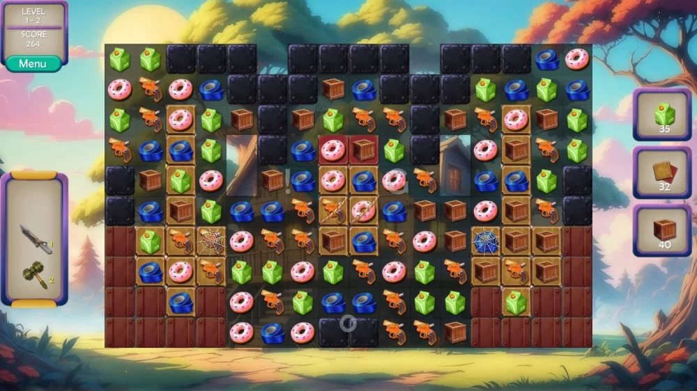 - Геймплей в стиле «три в ряд» с элементами головоломок;