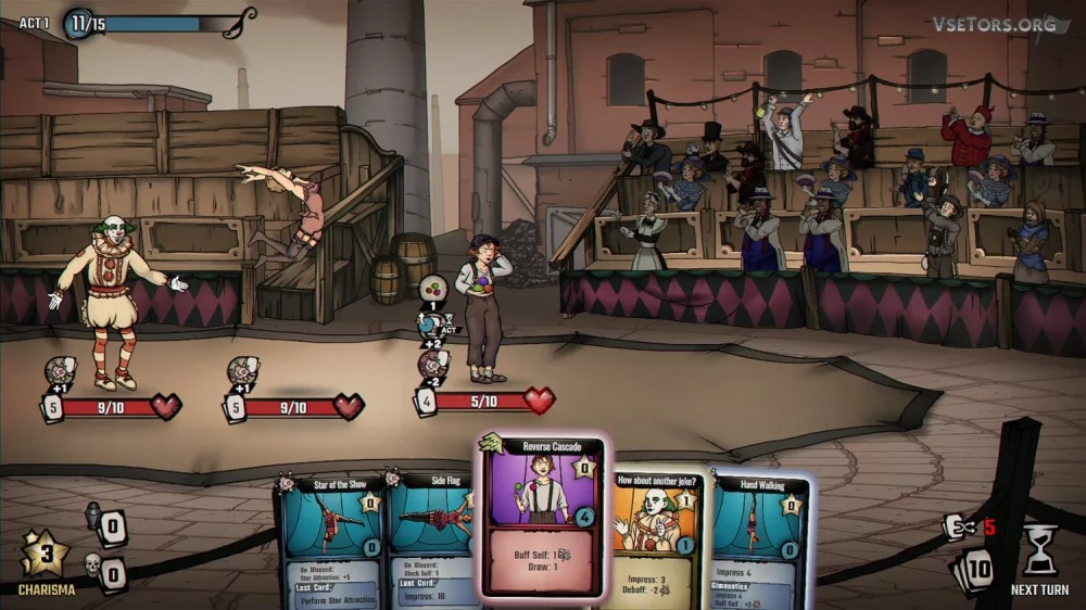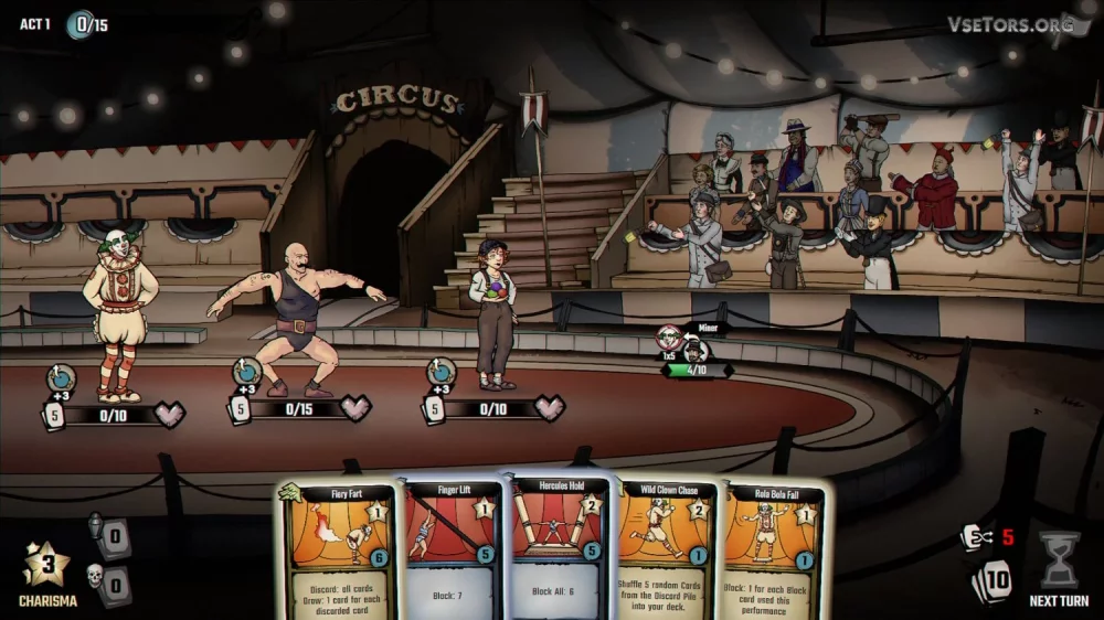 В The Amazing American Circus вы столкнетесь с увлекательным смешением карточной ролевой игры и симулятора, где каждые принятое решение и каждый разблокированный элемент играет ключевую роль в вашем успехе. Развивайте цирк, собирайте талантливых артистов, и покажите миру самое захватывающее шоу своего времени.