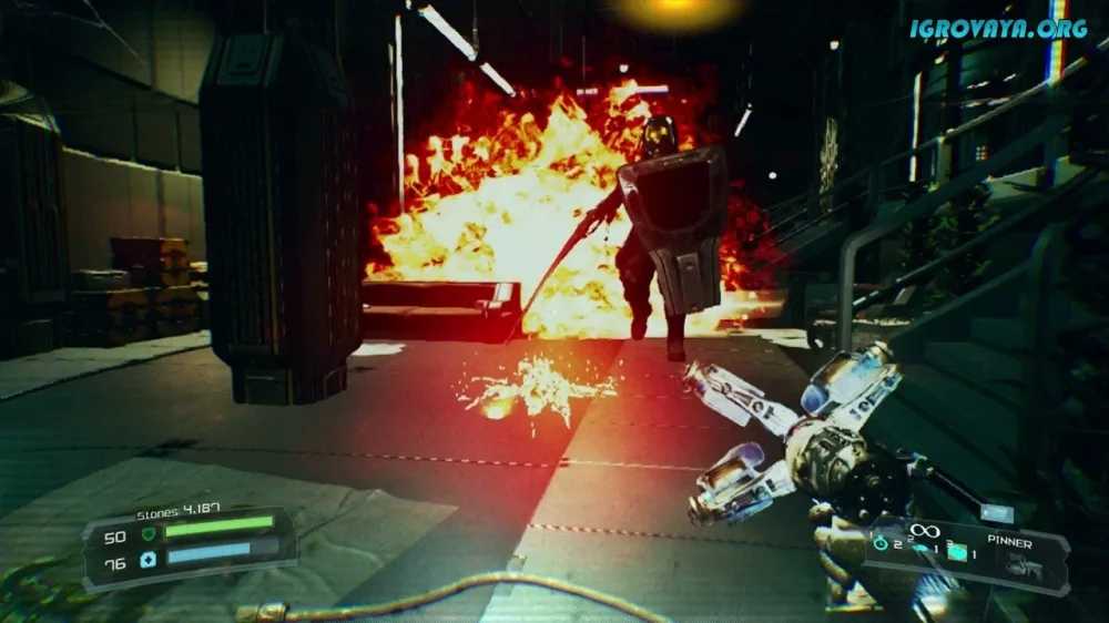- Геймплей в стиле шутера, где основной акцент на боеприпасах и оружии.