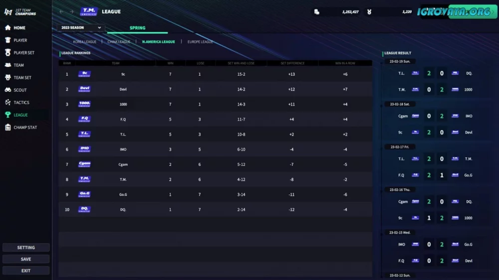 League Manager 2023 - это захватывающий симулятор, где вы станете менеджером киберспортивной команды. Вам предстоит создать свою собственную группу и поднять ее на вершину мирового признания и богатства. Вашим заданием будет изучить характеристики потенциальных игроков, собрать команду и разработать план тренировок, чтобы развить навыки в различных играх. Оценивайте их успехи, разрабатывайте стратегию развития, участвуйте в различных соревнованиях на международном и региональном уровнях.