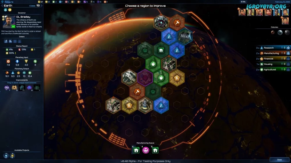 Колонизация новых миров – это сложный и захватывающий процесс, где каждый выбор имеет значение. Вы столкнетесь с разнообразием планет, от благоприятных для жизни до враждебных и непригодных. Ваша задача – превратить каждую из них в процветающий колонизированный объект для своей цивилизации.