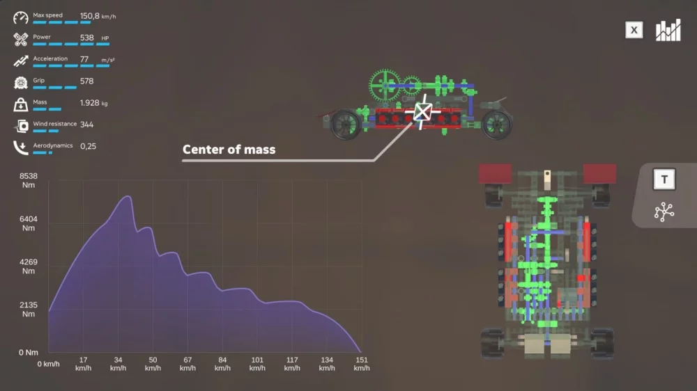 - Возможность обкатывать созданные транспортные средства на специально созданном автодроме.