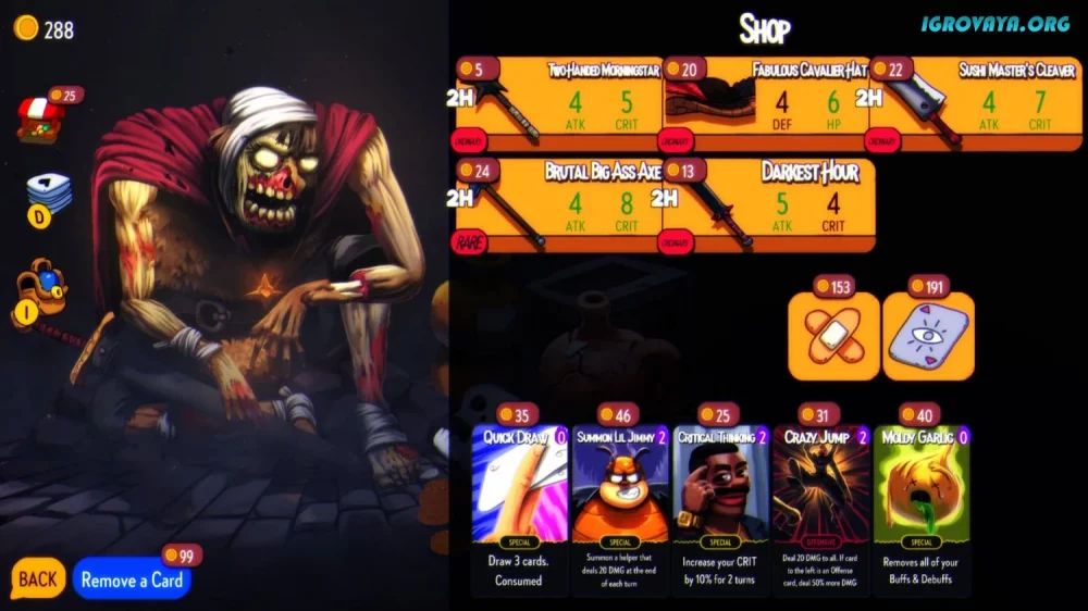 Игровой процесс в Doors of Insanity полностью основан на карточной системе и торговле. Вам необходимо стратегически использовать карты с уникальными эффектами, чтобы одержать победу в битвах. Зарабатывайте деньги, чтобы приобретать лут, снаряжение и улучшения, которые помогут вам стать еще сильнее.