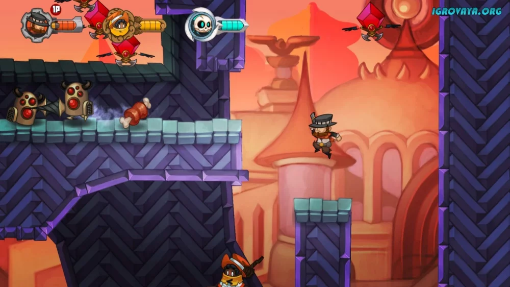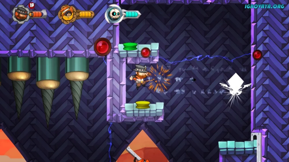 - Ручные уровни с ловушками и врагами, сложность которых постепенно увеличивается, требуя от игроков мастерства в управлении персонажами.