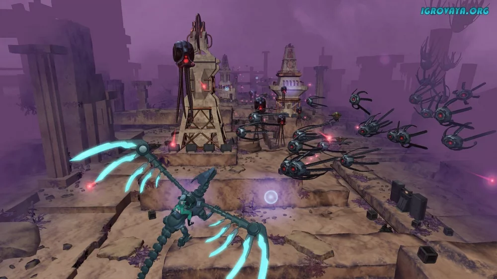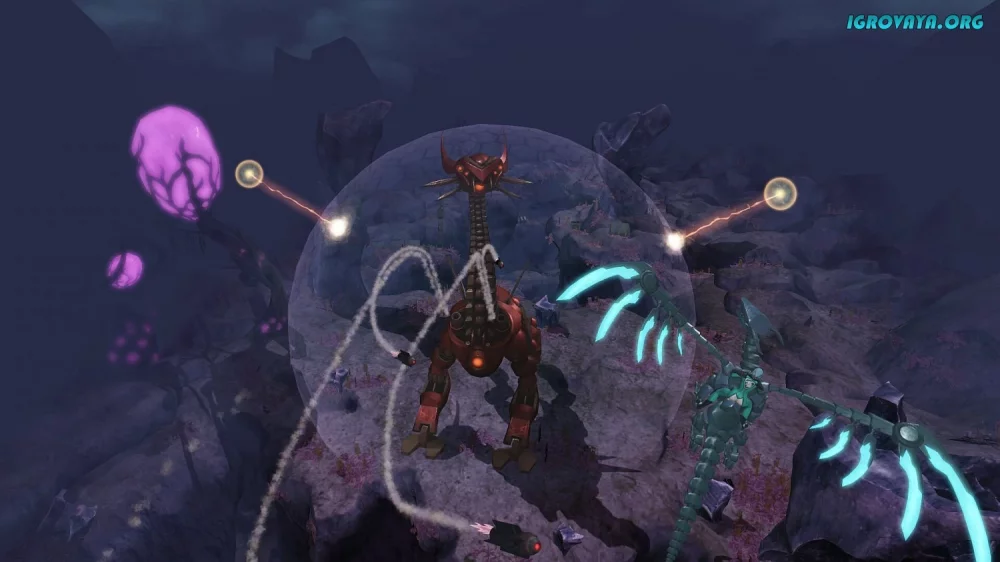- Сражайтесь с инопланетными мехами и технодемонами, исследуя тайны планеты.
