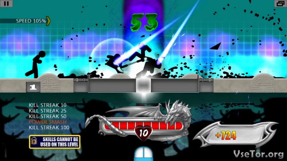 One Finger Death Punch - это захватывающий двухмерный файтинг, где вы столкнетесь с бесконечными волнами врагов, атакующих со всех сторон. В этой игре нет сложного сюжета, зато есть огромное количество динамичных боев.