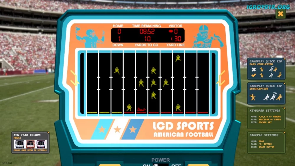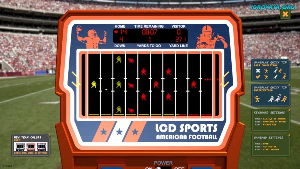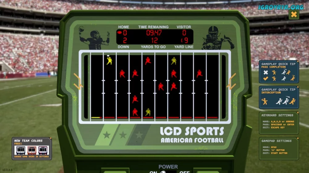 Переиздание классической спортивной игры LCD Sports: American Football порадует всех поклонников американского футбола. Выберите свою команду и покажите все свои навыки на поле, сражаясь с противниками в лице искусственного интеллекта или другого игрока. Осуществляйте передачи, уклоняйтесь от соперников и добейтесь победы в захватывающих поединках.