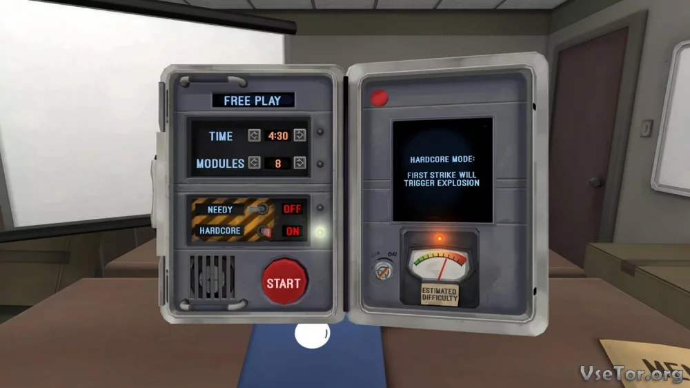 Правила! В комплекте с игрой вы найдете специальную инструкцию «Инструкция по Обезвреживанию Бомбы» на русском и английском языке. Лучше распечатать инструкция, либо запустить на отдельном устройстве. Один игрок запускает игру, а второй использует инструкцию. Игроки могут только общаться, тот, у кого инструкция не может смотреть на бомбу, а тот, кто обезвреживает бомбу не может смотреть на инструкцию. Только при помощи общения вы должны обезвредить бомбу!
