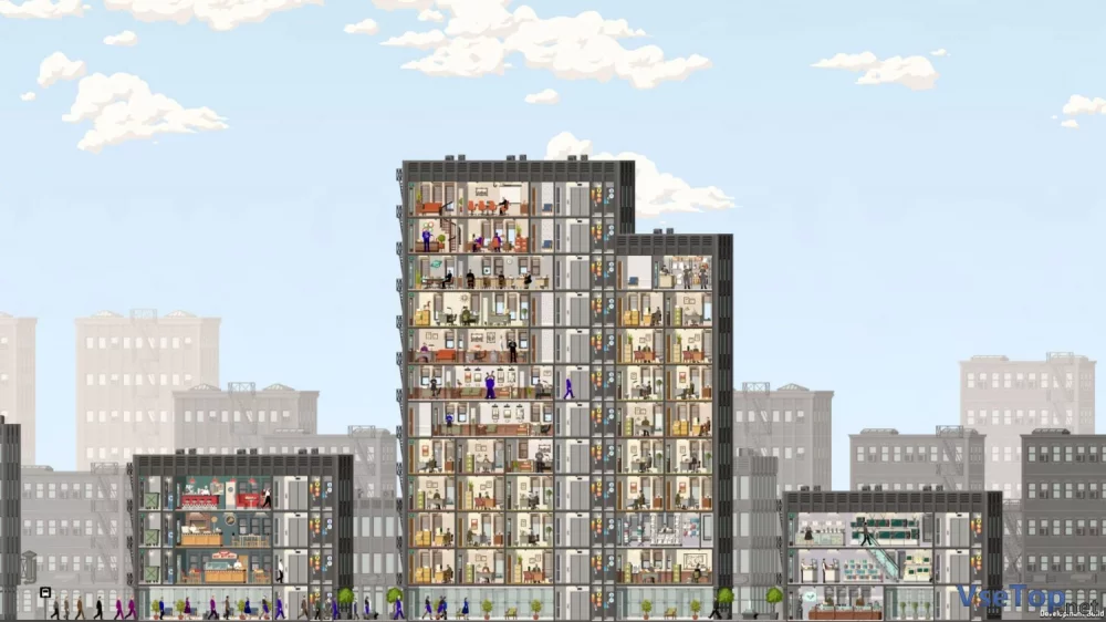 В вашем распоряжении различные типы помещений – магазины для шопоголиков, офисы для ученых, дорогостоящие апартаменты для важных гостей. Выбор за вами, но помните: комфорт и удовлетворение клиентов – залог успешного бизнеса. Имейте в виду, что только постоянный рост дохода обеспечит вам стабильное развитие и процветание вашего небоскреба.