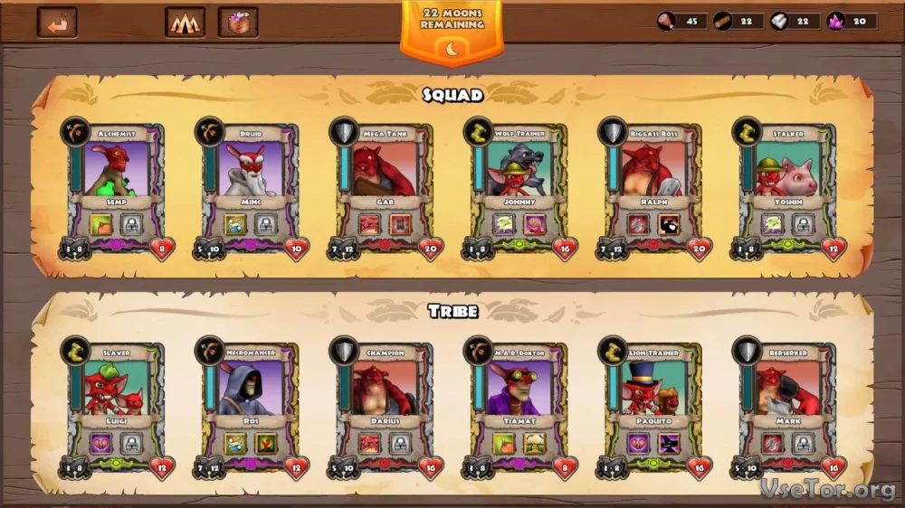 - Прокачивайте различных бойцов из 16 доступных классов, создавая оптимальный отряд для победы.