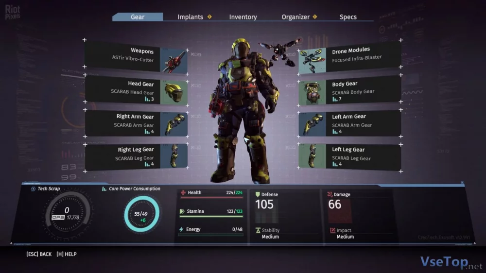 Каждый враг имеет слабые места, которые вам необходимо находить и использовать. Собирайте отпавшие конечности и модернизируйте свой экзоскелет, делая его еще мощнее. В вашем арсенале будут автоматы, кинжалы, пилы, лазеры и многое другое, что можно получить, отобрав у ваших противников.