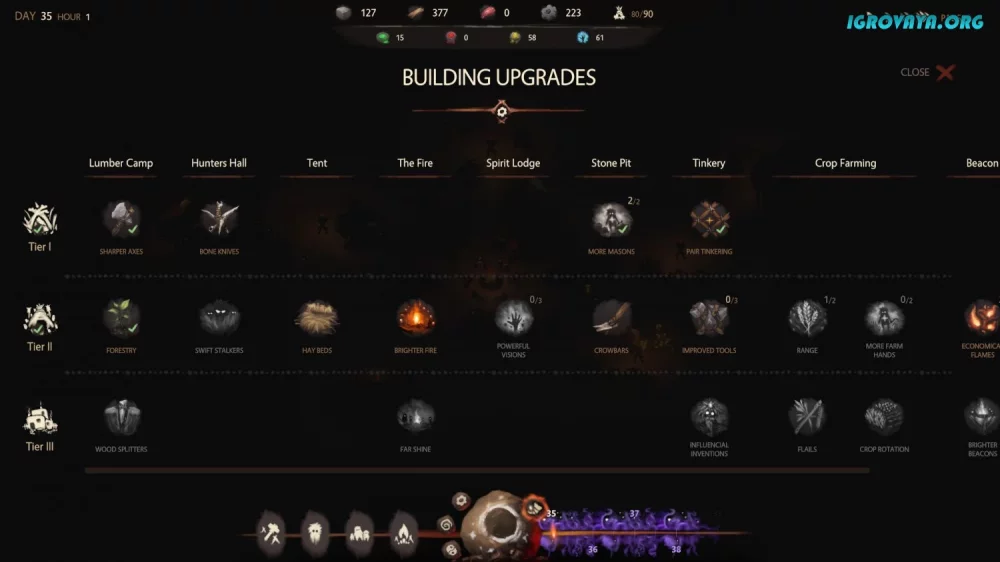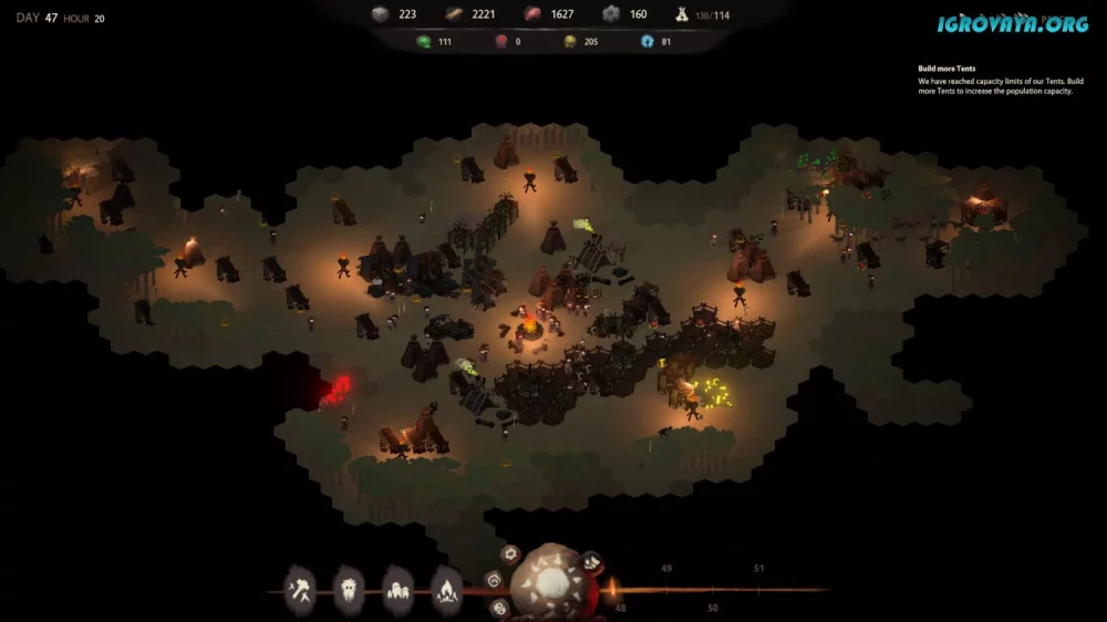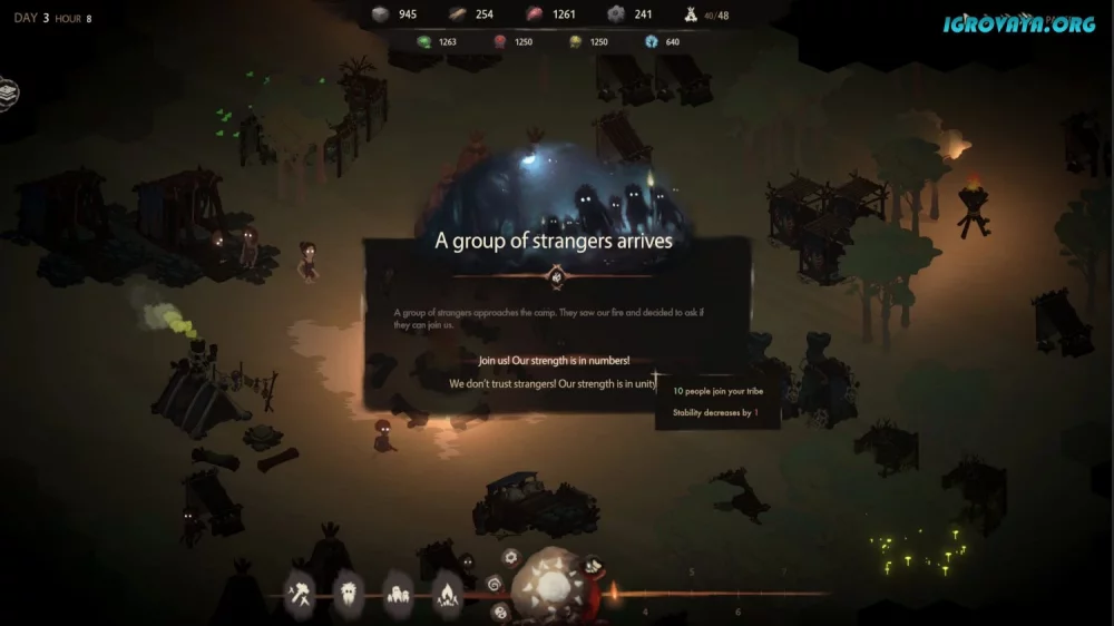 - Каждый житель племени уникален и не будет подчиняться вашим командам напрямую. Но вы сможете влиять на их действия через различные манипуляции, такие как строительство зданий, улучшения, исследования и принятие решений.