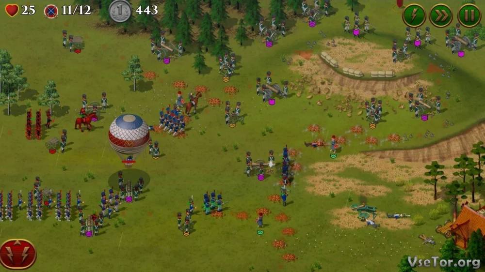 - Создавайте армию, управляйте юнитами, улучшайте оружие и прокачивайте силы для одержания победы.