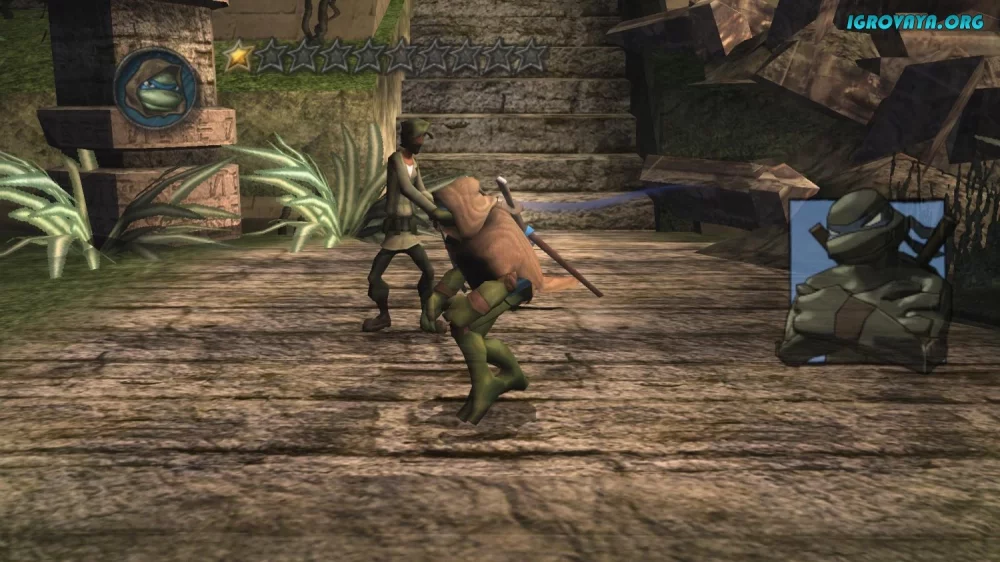 Teenage Mutant Ninja Turtles: The Video Game предлагает захватывающий экшен с массой драк и увлекательным сюжетом. Погрузитесь в мир черепах-ниндзя и примите вызов злодею, угрожающему миру!