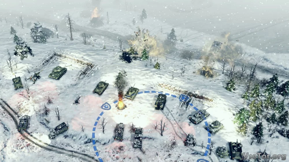 Игра предоставляет вам возможность выбрать одного из великих военачальников со своими уникальными бонусами и способностями, что придает игровому процессу дополнительную глубину. А наличие доступа к исторической военной технике позволит вам почувствовать себя настоящим полководцем, управляя мощными машинами смерти.