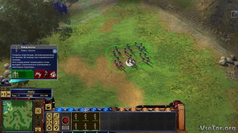 - Игровой процесс, основанный на классических механиках RTS – стройте базу, добывайте ресурсы, создавайте юнитов и сражайтесь на поле боя.
