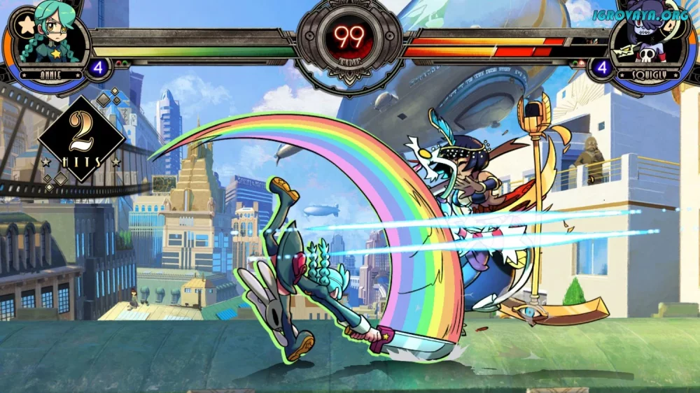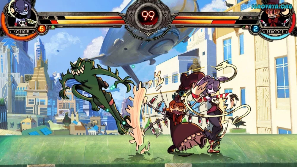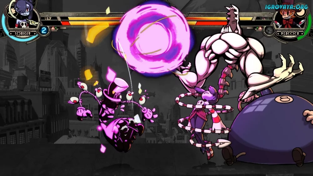 Skullgirls - это увлекательный классический двухмерный файтинг, который порадует вас многочисленными необычными персонажами, крутыми комбинациями ударов и просторными аренами. В игре также присутствует захватывающий сюжет, который раскрывается через многочисленные сражения.