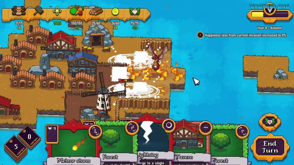Ваш остров не останется в покое, ведь враги не дремлют. Подготовьтесь к встрече с противниками, которые нападут на вашу территорию и будут разрушать все на своем пути. Используйте силы бога, чтобы наказать недоброжелателей и защитить свою землю. После победы не забывайте о восстановлении колонии и укреплении обороны перед новыми битвами.