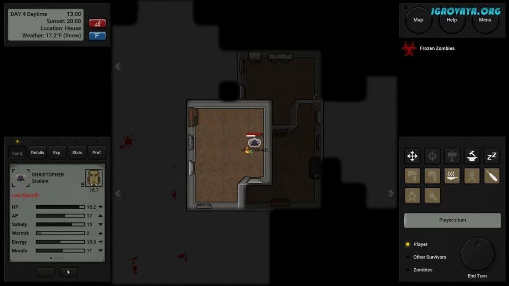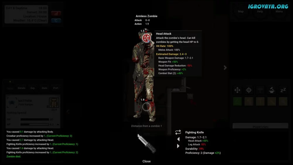 Врагами в этой игре становятся не только зомби, которые могут атаковать вас в любой момент, но и ваше собственное здоровье. Проконтролируйте свои показатели голода, жажды и общего состояния, чтобы не стать легкой добычей для ходячих мертвецов. Помните, что укус зомби может стать вашим последним приговором, поэтому лучше избегайте столкновений во что бы то ни стало.