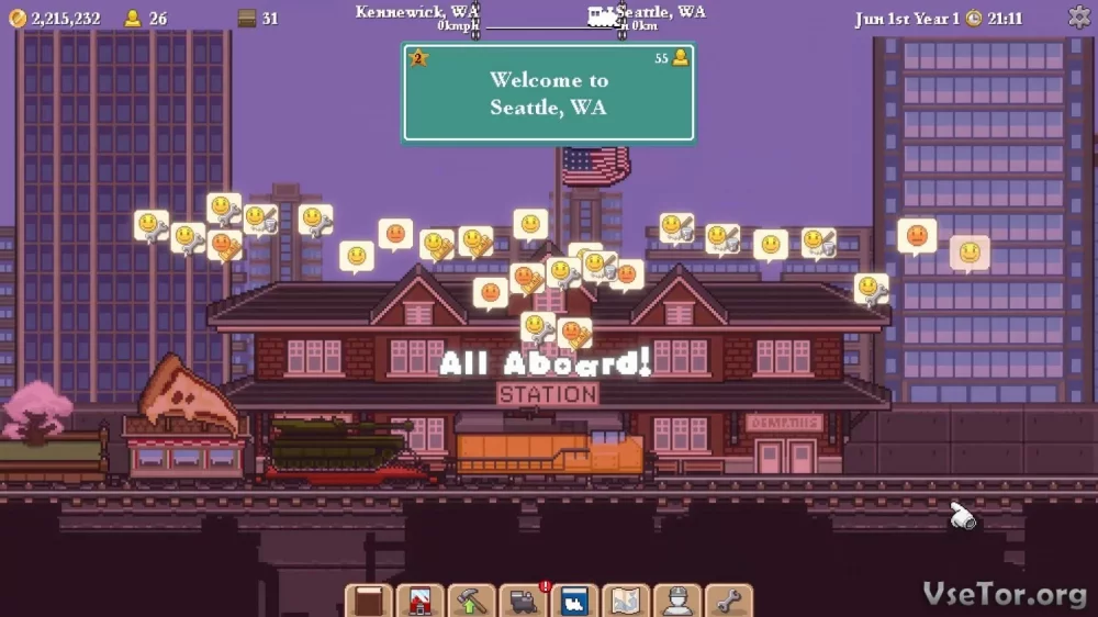 Выбирайте свое направление развития - можете стать экспертом в пассажирских перевозках, создавая поезда с ресторанами и развлекательными учреждениями. Или же сосредоточьтесь на грузоперевозках, развивая сеть доставки по всему миру. Решение остается за вами.