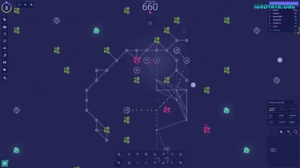 - Разнообразие построек и возможность их разблокировки за очки позволяют создавать уникальные стратегии обороны.