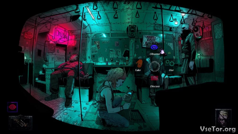 Необходимо отметить, что визуальное исполнение игры представляет собой уникальное сочетание квеста и визуальной новеллы. Сюжетная линия раскрывается через комиксные заставки с диалогами, а великолепная визуальная составляющая и множество уникальных персонажей делают игровой мир захватывающим. Решайте множество диалогов и принимайте важные решения, влияющие на ход игры…