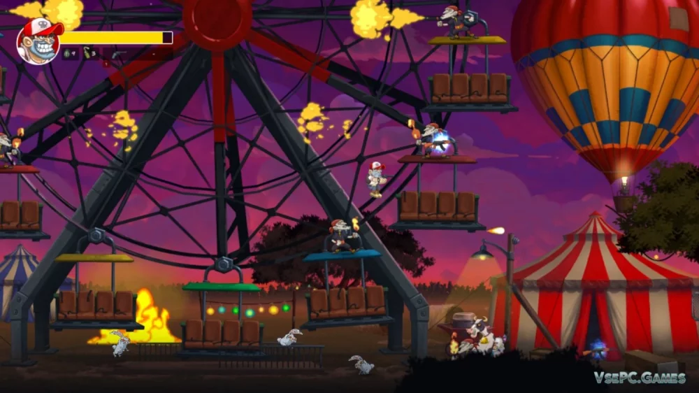 Игровой процесс наполнен невероятной динамикой, ураганными перестрелками и кровавыми битвами. Враги будут атаковать вас со всех сторон, заставляя вас использовать все свои навыки и оружие для того, чтобы выжить. Гризли, кролики, обезумевшие бабули и старики будут наступать один за другим, создавая непреодолимые препятствия на вашем пути к дому.