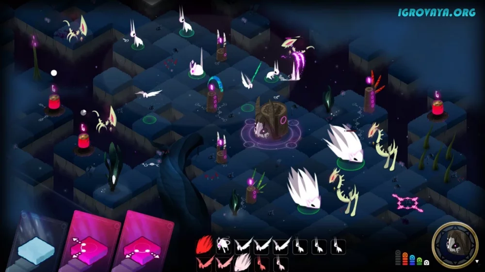 В целом, игра напоминает традиционные стратегии в реальном времени, но при этом предлагает множество уникальных геймплейных моментов. Создавайте свои уникальные руны, стройте мир плитка за плиткой и призывайте духов для защиты ядра. Несмотря на сложность и разнообразие игровых механик, все это выглядит захватывающе и увлекательно.
