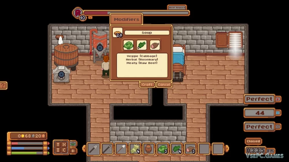 На вашем пути встретятся и производство, и крафтинг. Вы сможете создавать спиртные напитки, мебель, готовить еду, и даже использовать магию для развития таверны. Ваш персонаж также будет развиваться, меняться и становиться сильнее.
