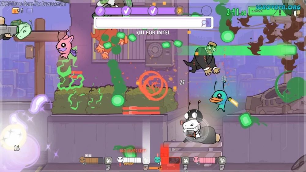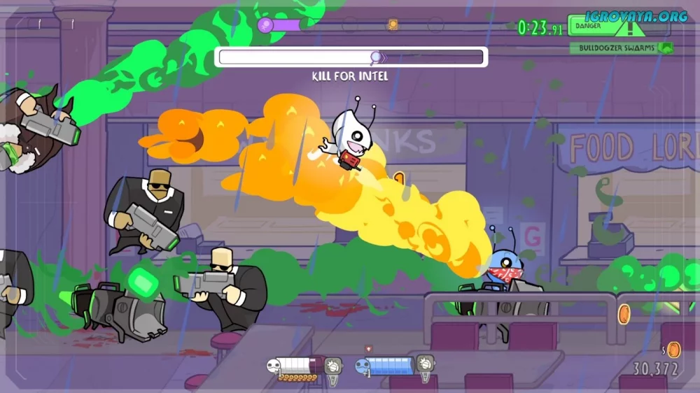 Проверьте свою скорость реакции, вступив в вихрь событий игры Alien Hominid Invasion, где каждый момент может измениться в миг. Динамичность проекта порадует всех поклонников динамичных стрелялок, где вам придется подстраиваться под переменчивую обстановку. Разнообразие противников с уникальными способностями добавит интереса к процессу, а множество навыков и предметов дадут вам возможность улучшить своего персонажа и адаптироваться к любым ситуациям.
