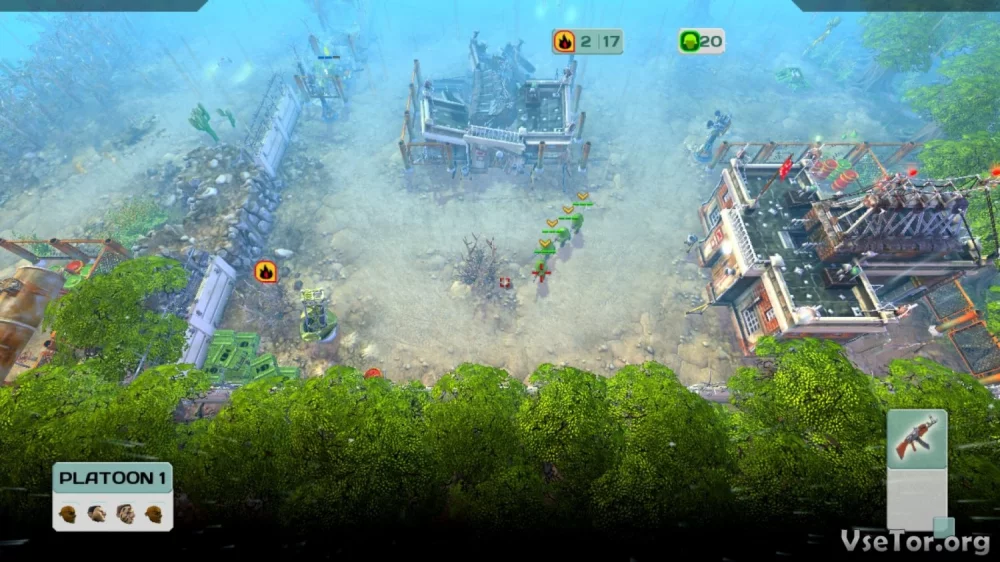 - Более двадцати видов вооружения для каждого бойца, включая тяжелое.