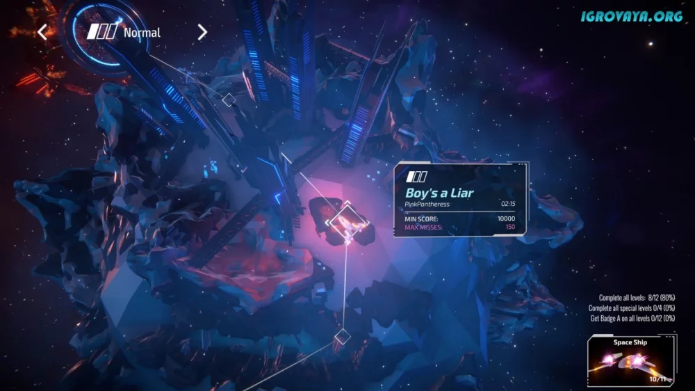 В лучших традициях жанра ритм-игр, Invector: Rhythm Galaxy предлагает вам окунуться в захватывающий мир неоновых светов и захватывающих музыкальных треков. Здесь каждый уровень представляет собой новое приключение, которое будет бросать вам вызов и заставит вас взгреть под музыку.