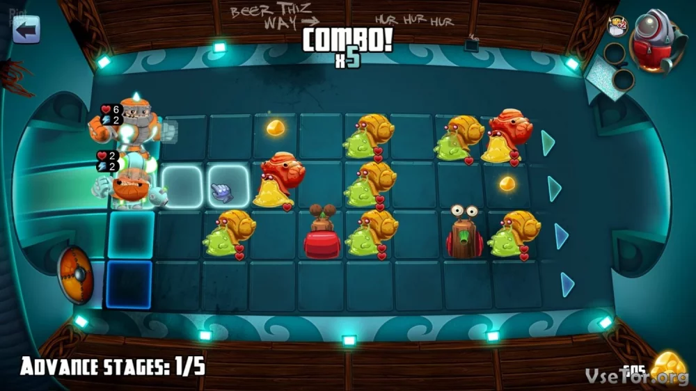 В игре вам предстоит стратегически планировать на глобальной карте, выбирать, куда отправить своих викингов для победы над улитками. Первоначально у вас будет всего один викинг, но с каждым уровнем в команде появятся новые бойцы.