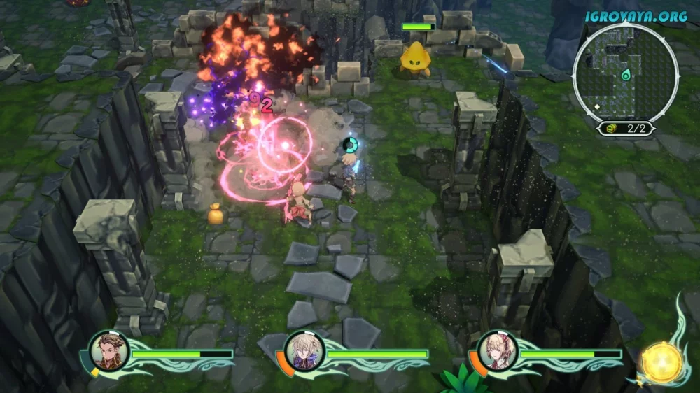 - Боевая система игры насыщена: вы управляете сразу тремя персонажами, каждый со своими уникальными способностями. Сочетайте их между собой для максимального эффекта.