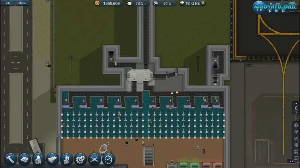 Вы владеете контролем над тем, что делать и как развивать аэропорт. Определяйте необходимое количество зданий, оборудование для диспетчерской вышки, маршруты такси, рейсы и цены на билеты. Создавайте расписание, совершенствуйте инфраструктуру, общайтесь с персоналом и принимайте стратегические решения.
