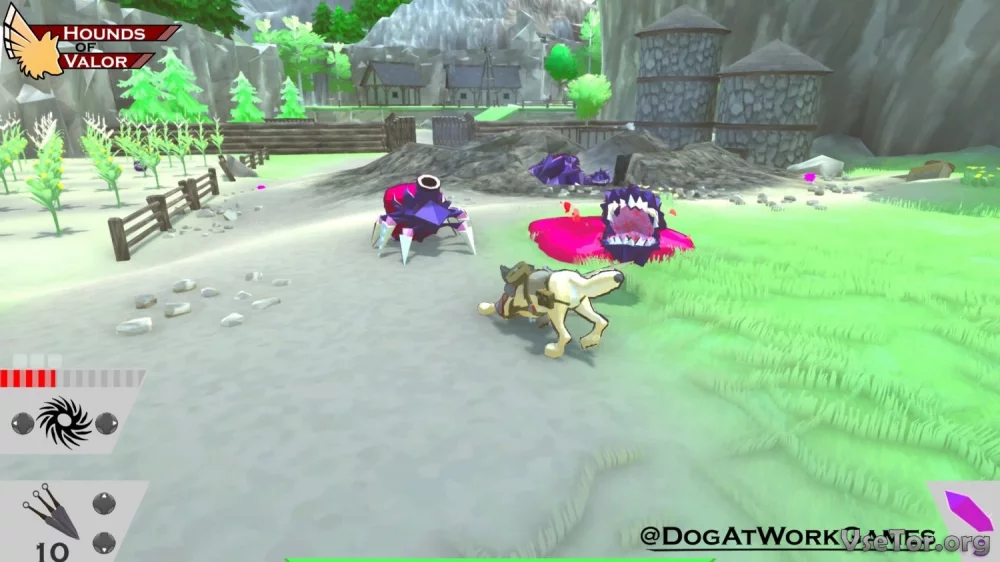 В Hounds of Valor вас ждет захватывающее фэнтезийное приключение, наполненное острыми сражениями, огромным частично открытым миром и уникальной геймплейной задумкой. Но здесь нет обычных людей – в это мире все решают собаки. Кажется, что это обычные псинки, но на самом деле они способны на многое, включая владение оружием.