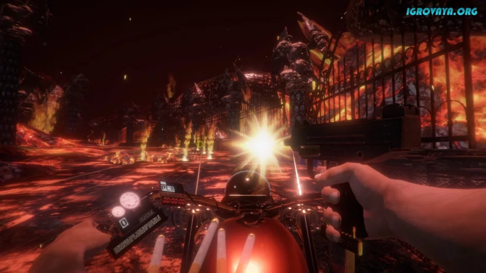 Но самое главное - атмосфера игры. Четыре сигареты во рту главного героя, безумная езда на мотоцикле через кровавые трассы, монстры, нежить и лавовые ловушки создают атмосферу, от которой захватывает дух.