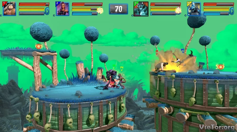 Одной из главных особенностей игры является ее разнообразие игровых режимов. Вам предстоит сразиться с одним противником в PvP, против компьютера или даже с группой противников одновременно. Нет ничего лучше, чем вступить в бой с несколькими оппонентами, которые тоже сражаются друг с другом. Используйте тактику, чтобы нанести урон сразу нескольким врагам или подождите момента, чтобы действовать в нужный момент.