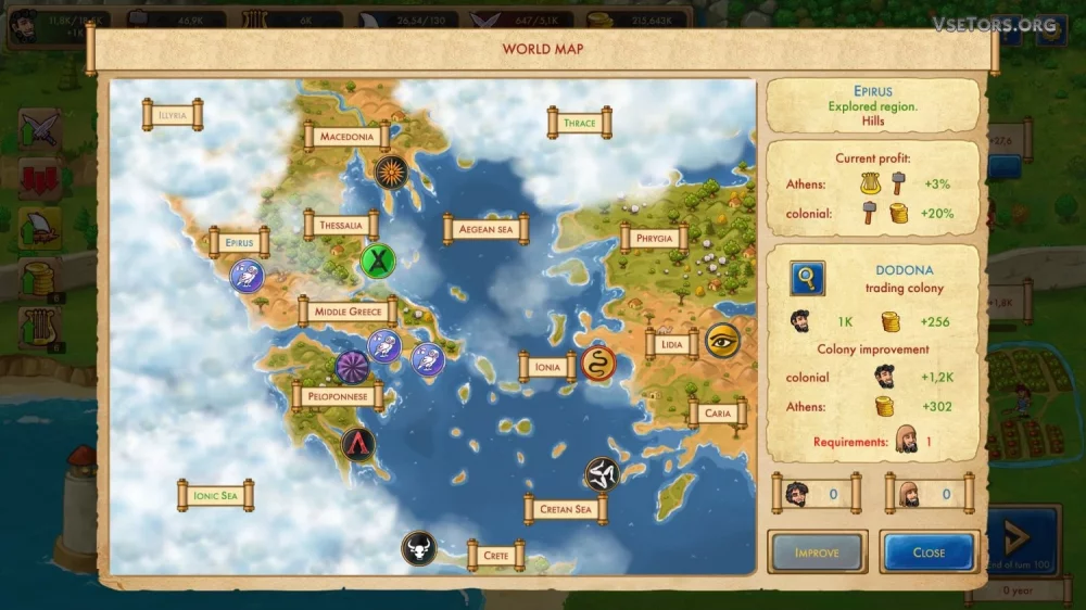 - Управляйте развитием небольшого поселения великой Древней Греции.