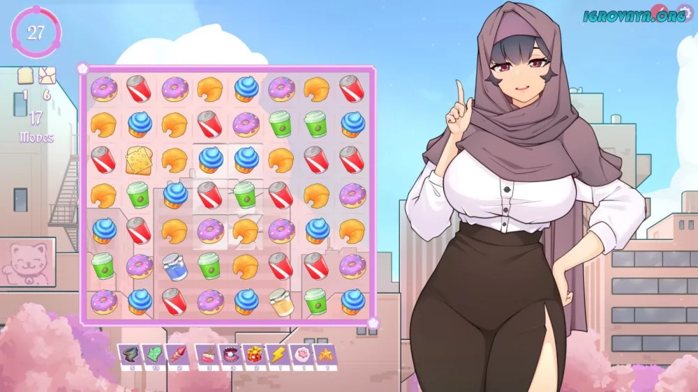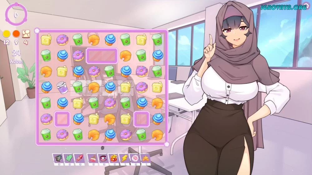 Центральным элементом игры станут отношения между главным персонажем и его загадочной начальницей. Вы будете пытаться показать ей свои умения в головоломке три-в-ряд, собирая комбинации предметов и зарабатывая очки. Успех в этой игре может принести вам не только удовлетворение, но и ценные вознаграждения в виде откровенных сцен.