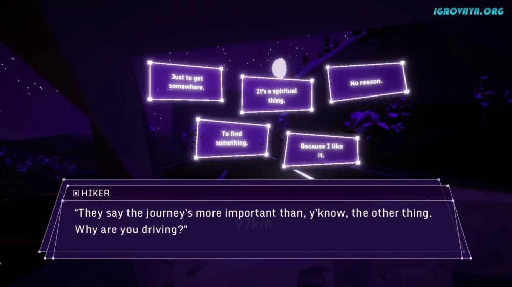 Glitchhikers: The Spaces Between предлагает уникальный опыт визуальной новеллы, где каждое ваше решение и диалог имеют значение. Медленные холодные грувы и волнующие клавишные мелодии создают атмосферу, способствующую внутреннему расслаблению и самопознанию.