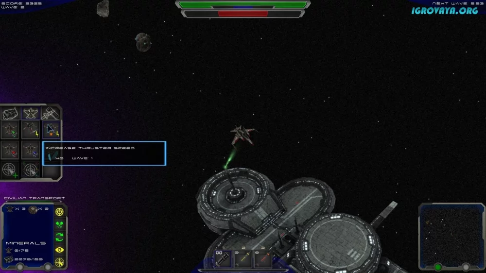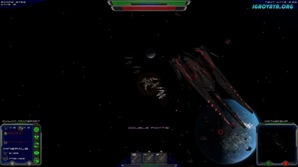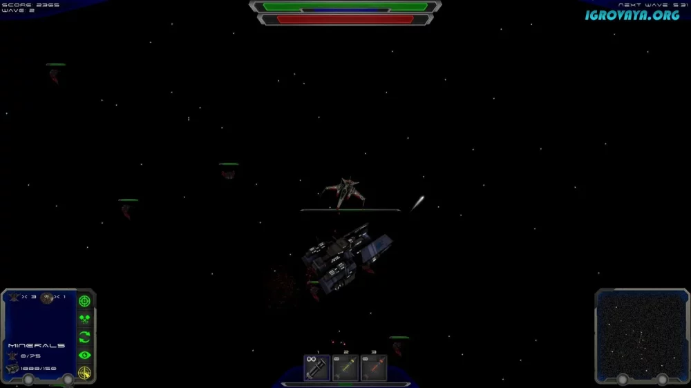 - Уничтожайте вражеские корабли и защищайте базу от нападений.