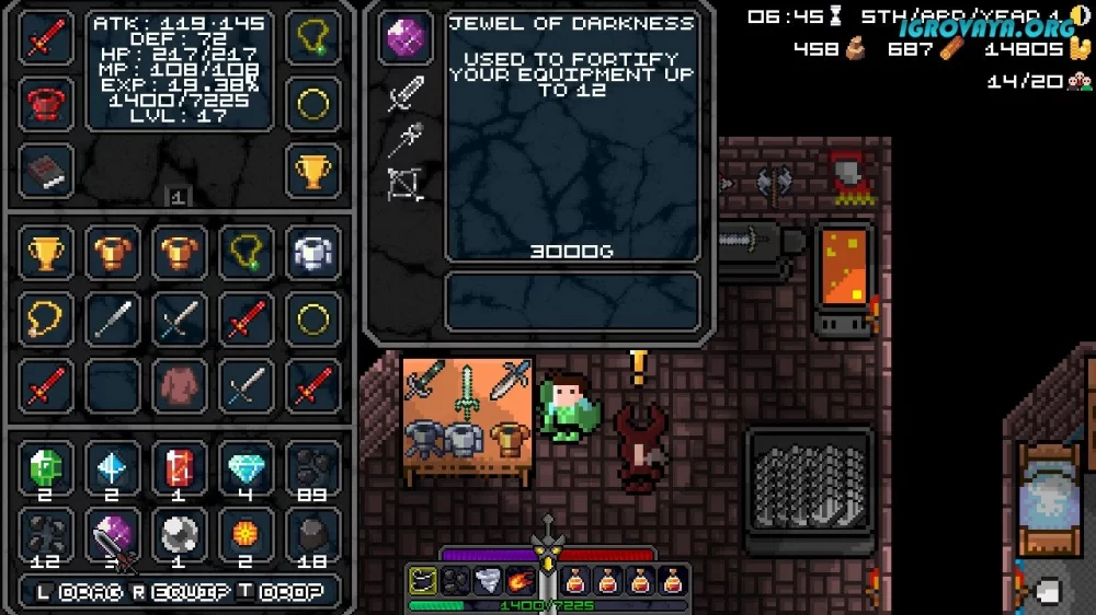 Развитие вашего персонажа играет важную роль. Вам придется улучшать навыки и способности главного героя, открывать новые умения, повышать уровень характеристик. Кроме того, вы сможете использовать разнообразное снаряжение: щиты, оружие, доспехи, артефакты и другие предметы. Их можно найти или создать самостоятельно. Собирайте материалы, создавайте вещи и делайте своего героя мощнее.