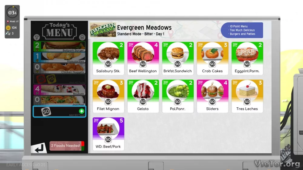Не смотря на то, что на первый взгляд игра выглядит простой, она скрывает в себе глубокие механики и интересные возможности. Вы будете испытывать на себе не только кулинарные испытания, но и стратегические решения о том, как улучшить свой грузовик, чтобы быть на шаг впереди конкурентов.
